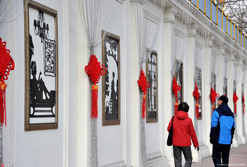 2017年2月7日,上海,在位于滬上歷史風(fēng)貌區(qū)的衡山路一處建筑工地的百米圍墻上,28幅具有17世紀(jì)巴洛克風(fēng)格的鐵藝畫作品讓路人眼前一亮、為街景帶來了獨特的藝術(shù)人文氣息。這座“露天美術(shù)館”就是新亮相的衡山藝?yán)取_@些鐵藝作品畫面既有濃郁的歐陸風(fēng)情,又巧妙地融入了中國剪紙的特色風(fēng)格。使衡山路歷史風(fēng)貌保護(hù)區(qū)內(nèi)的臨時工地圍墻成了一種高雅文化藝術(shù)的享受。